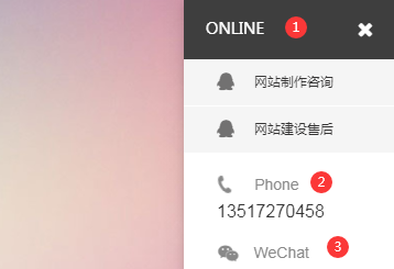 尊敬的客户,你好! 为进一步优化我们H5建站平台,同时进一步提升英文版用户体验,我们将对全局模板的在线客服进行升级。主要体现在:在线咨询更为为ONLINE、联系电话更改为Phone、扫一扫更改为WeChat,因为ONLINE、Phone、WeChat绝大部分中国人都认得,但在线咨询、联系电话、扫一扫绝大部分外国人不一定认得。