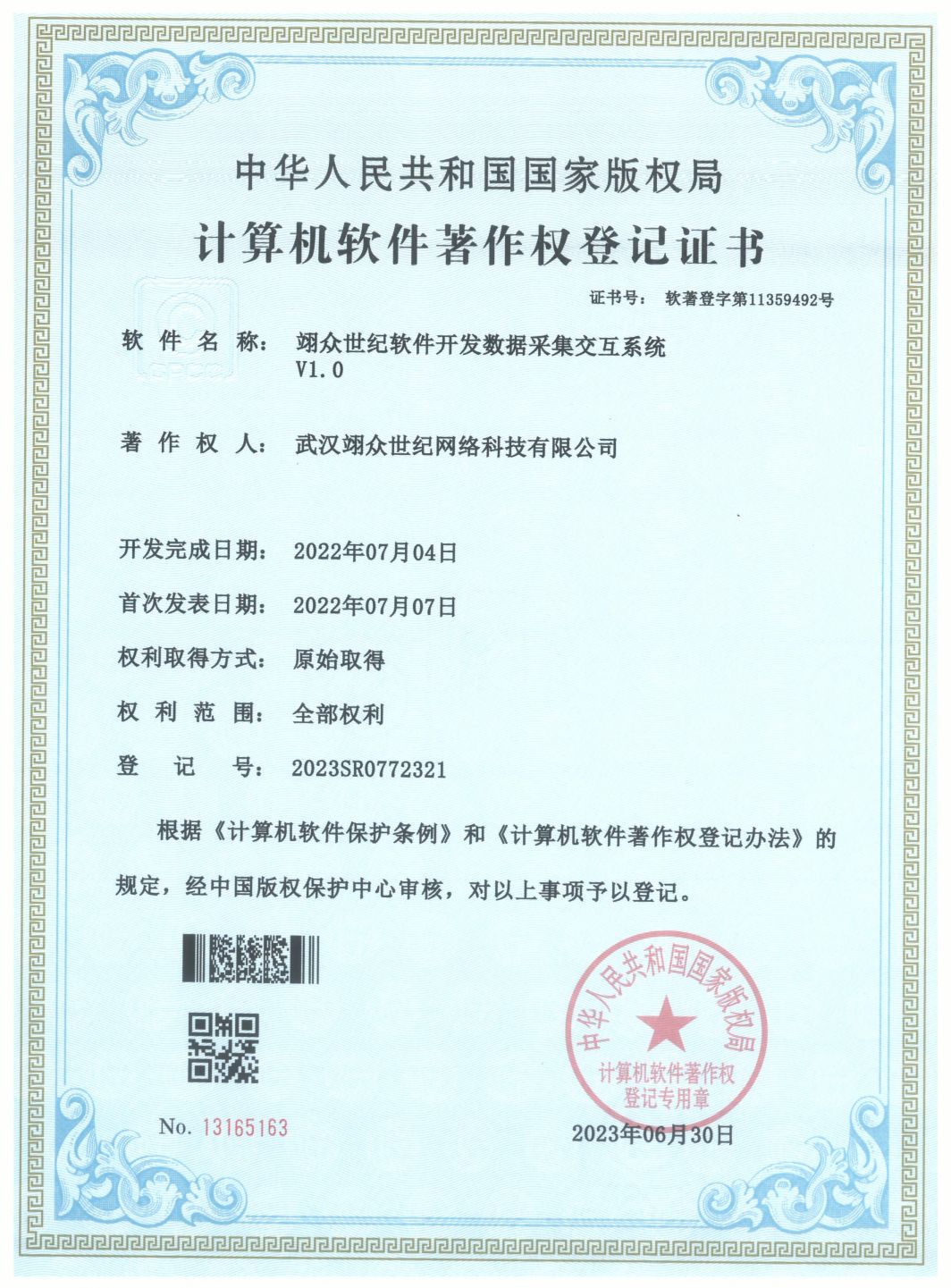 翊众世纪软件开发数据采集交互系统软著