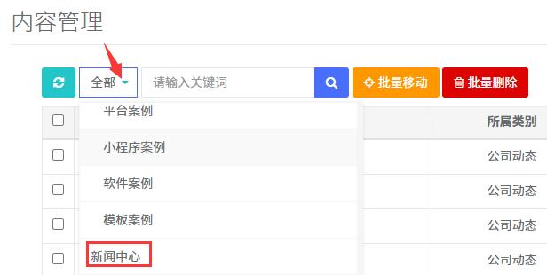 1.进入后台,点击左侧菜单栏中的【内容系统】,在下级菜单点击【内容管理】
