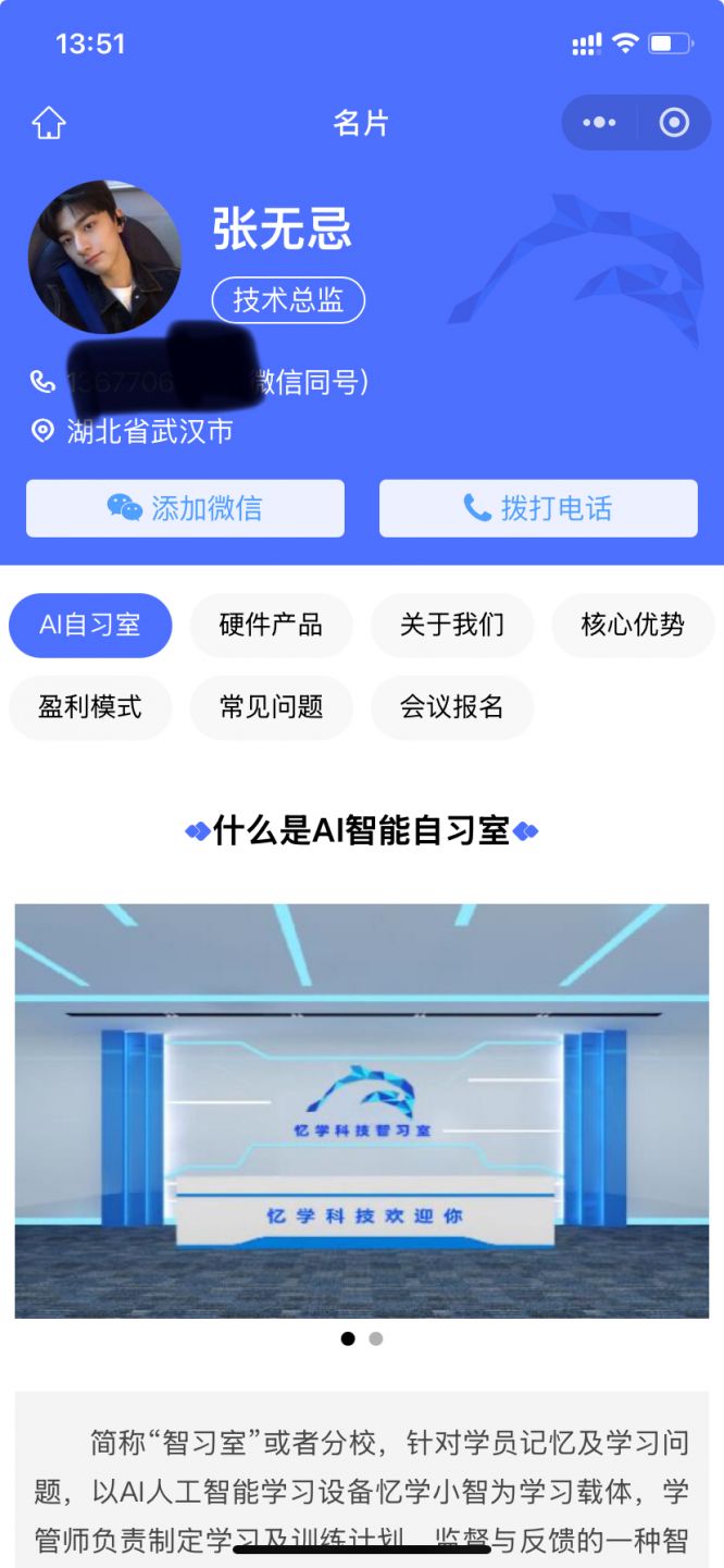 热烈庆祝忆学科技小程序开发完成并上线!该小程序除了传统的宣传推广外,可以给每个员工都设置一个附带宣传推广内容的名片,便于微信和小程序传播。