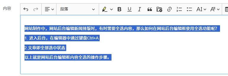 网站制作中,网站后台编辑新闻排版时,有时需要全选内容,那么如何在网站后台使用全选功能呢?
