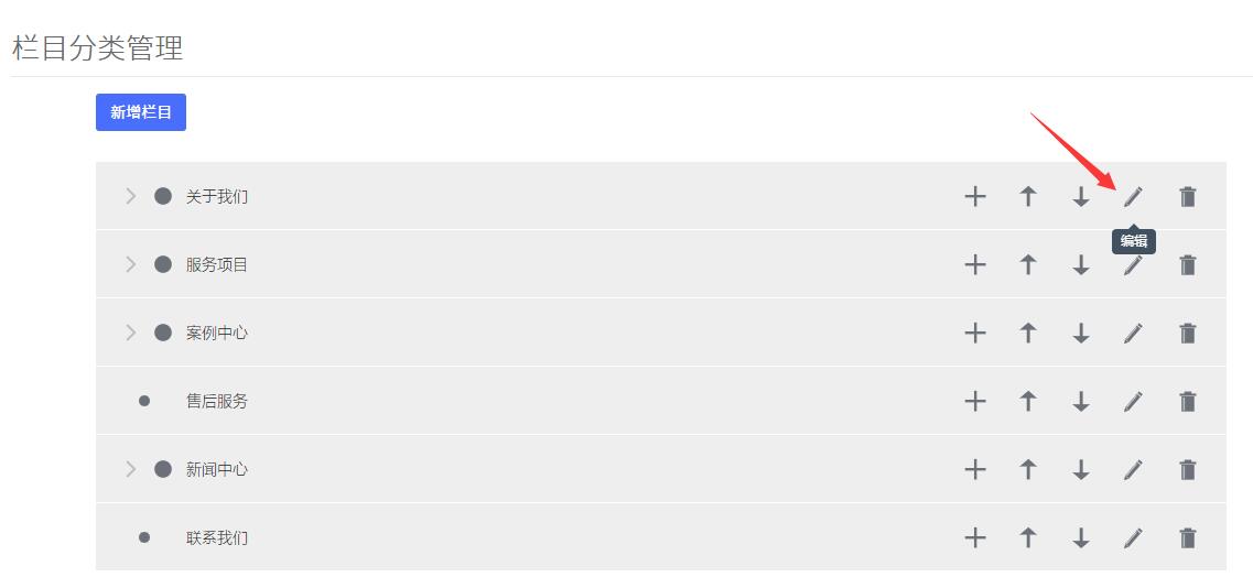 2.进入栏目分类管理,选择需要添加缩略图的栏目,点击右侧【编辑】