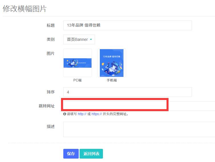 3.进入【修改横幅图片】,在跳转网址处清空链接