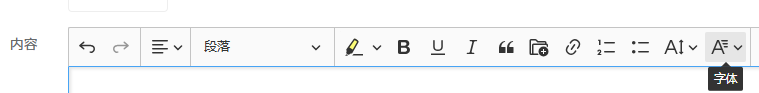 2.在字体弹出的下拉框中选择字体的样式,后台默认的字体是微软雅黑,根据需求设置不同的字体,为了让网站字体渲染效果更精美也可以在编辑器中选择设置字体样式、文字大小,颜色,加粗等