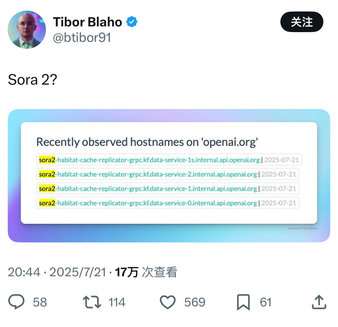 7 月 24 日消息,科技媒体发布博文,报道称 OpenAI 为增强与谷歌 Veo 3 的竞争,正酝酿推出 Sora 2 模型,有望成为最强视频生成 AI 模型。用户@btibor91 于 7 月 21 日在 X 平台发布推文,在挖掘 OpenAI 服务器时,在代码中发现了 Sora 2 的相关引用,表明 OpenAI 已开发新的视频生成模型。